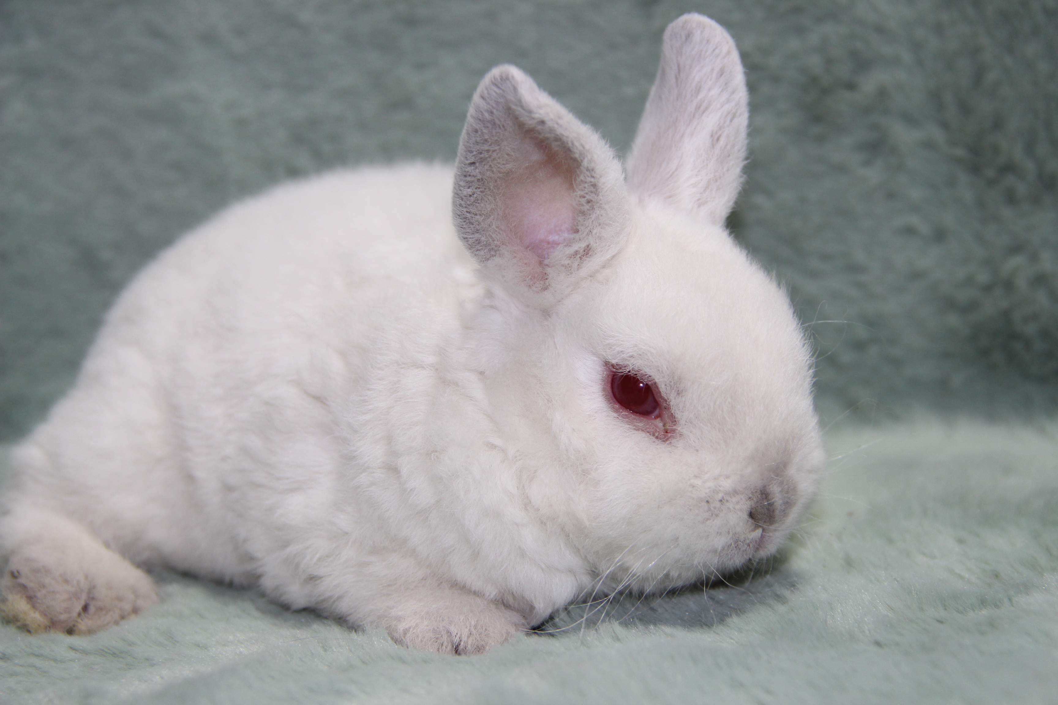 Порода: карликовый рекс (вес взрослого 1,2 кг). Очень короткая шерсть - гипоаллерген.